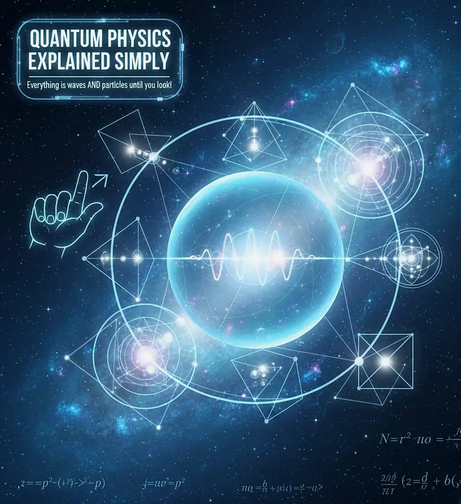 By Rameshwar Kumar 17/12/2025 परिचय: दोस्तों अगर आप स्टूडेंट या टीचर हैं तो क्वांटम फिजिक्स के बारे में आपने सुना होगा! अगर आपको क्वांटम फिजिक्स के बारे में ज्यादा नॉलेज नहीं है या फिर क्वांटम फिजिक्स आपको समझ नहीं आया तो आज का यह Blog गाइड आपके लिए है! इस Blog पोस्ट में आपको क्वांटम फिजिक्स को आसान शब्दों में समझाया जाएगा! # Quantum Physics क्या हैं ? ( What is Quantum Physics ) क्वांटम फिजिक्स भौतिक विज्ञान की वह शाखा है जिसमें बहुत छोटे-छोटे कणों और अणुओं के व्यवहार के बारे में सीखने को मिलता है! आसान लैंग्वेज में कहे तो क्वांटम फिजिक्स माइक्रोस्कोपिक की दुनिया का वह विज्ञान है जिसमें हम उन चीजों के बारे में जानते हैं जिसे हम खुली आंखों से नहीं देख सकते! # Quantum Physics Explained Simply का मतलब है क्वांटम फिजिक्स के बारे में आसान शब्दों में बताना या सुझाव देना! क्वांटम फिजिक्स को ऐसा नियम माना जाता है जो बहुत छोटे- छोटे कणों पर लागू होता है! क्वांटम फिजिक्स का नियम रोजमर्रा की जिंदगी पर लागू नहीं होती है! # क्लासिकल फिजिक्स एवं क्वांटम फिजिक्स में अंतर– दोस्तों अगर आप क्वांटम फिजिक्स को समझना चाहते हैं तो आपको क्लासिकल फिजिक्स एवं क्वांटम फिजिक्स के बीच के अंतर के समझना पड़ेगा! यहां पर आपको समझने के लिए क्लासिकल फिजिक्स एवं क्वांटम फिजिक्स के अंतर को बताया जा रहा है– •क्लासिकल फिजिक्स बड़ी-बड़ी चीजों पर लागू होता है जबकि क्वांटम फिजिक्स बहुत छोटे-छोटे कणों पर लागू होता है! • क्लासिकल फिजिक्स में Rules Fix होते हैं जबकि क्वांटम फिजिक्स Probability पर आधारित होती है! •क्लासिकल फिजिक्स न्यूटन के Laws के अनुसार काम करती है जबकि क्वांटम फिजिक्स Wave - Particle Duality पर आधारित होती है! # Quantum Physics को आसान शब्दों में समझें – यहां पर आपके लिए कुछ सिंपल examples दिए जा रहे हैं जो आपको क्वांटम फिजिक्स को समझने में काफी हेल्प करेगा! Examples 1. सिक्का उछालना – सिक्का उछालने पर क्लासिकल फिजिक्स कहती है या तो Head आएगा या tail, लेकिन क्वांटम फिजिक्स कहती है कि हेड एवं tail दोनों एक साथ आएगा जब तक कि हम उसे Observe ना कर ले! क्वांटम फिजिक्स के इस नियम को Super position कहा जाता है! Examples 2. Bulb & Energy – बल्ब एवं एनर्जी के बारे में क्लासिकल फिजिक्स कहती है कि एनर्जी Continuous चलते रहती है, जबकि बल्ब एवं एनर्जी के बारे में क्वांटम फिजिक्स कहती है कि एनर्जी छोटे-छोटे Packets में होती है! इन Packets को Quanta कहते हैं! # Quantum Physics के Main Concept को आसान शब्दों में समझे– अगर आप क्वांटम फिजिक्स को आसान शब्दों में समझाना चाहते हैं तो आपके लिए यहां पर कुछ Important point बताया जा रहा है जिसे फॉलो करें– 1.Quantum Superposition – Quantum Superposition का कहना है कि एक पार्सल एक ही समय में कई जगहों पर हो सकता है जब तक कि आप उसे पार्सल को देख नहीं लेते! 2. Wave – Particle Duality – इस नियम के अंतर्गत यह बताया गया है कि पार्सल कभी वेव की तरह काम 