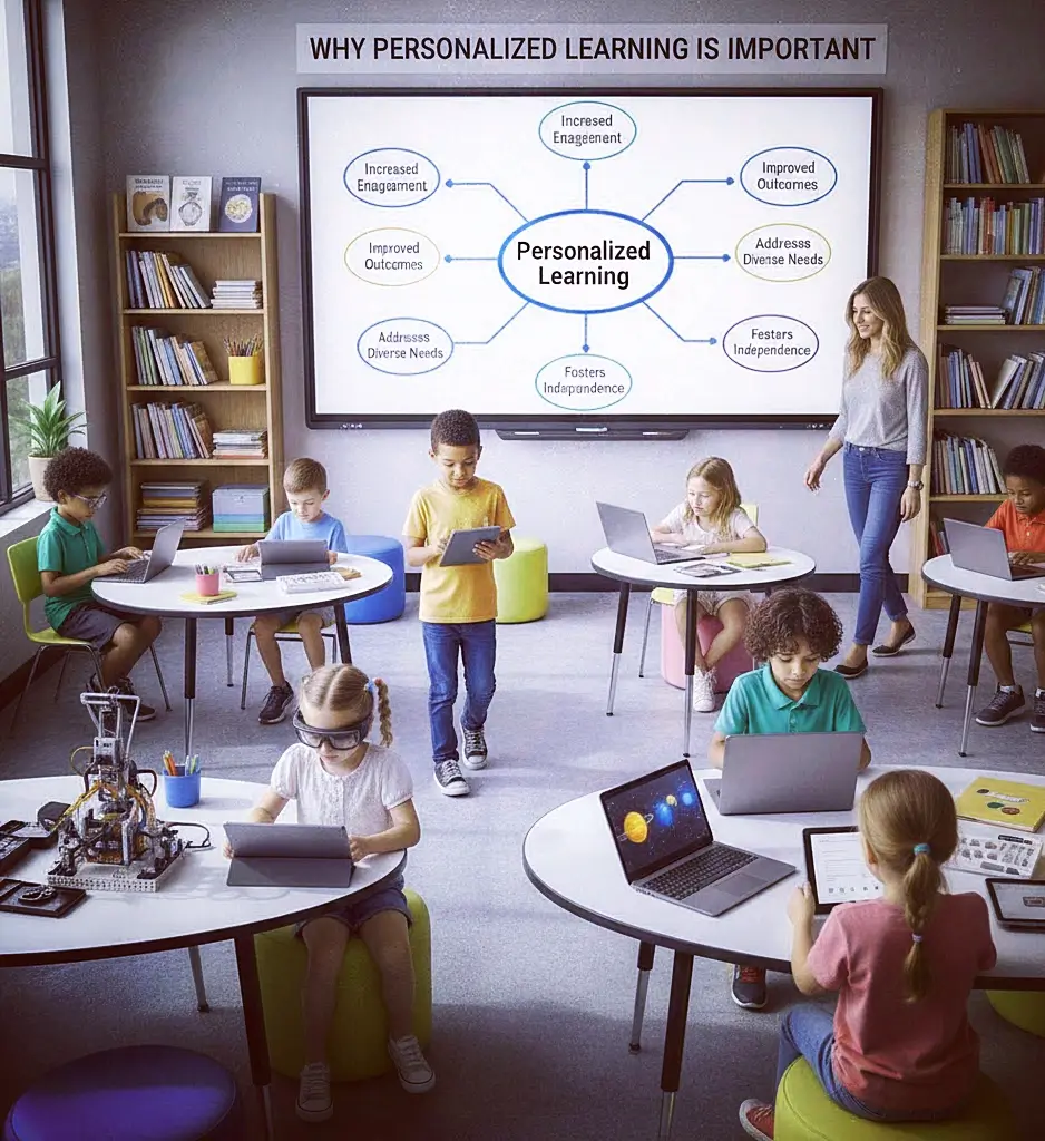 Written by Rameshwar Kumar Published Date 6/12/2025 परिचय: दोस्तों आज के मॉडर्न एजुकेशन सिस्टम में पर्सनलाइज्ड लर्निंग को सबसे ज्यादा महत्व दिया जा रहा है! पर्सनलाइज्ड लर्निंग आज के एजुकेशन सिस्टम में सबसे ज्यादा चर्चा वाला टॉपिक बन गया है! आज के समय में हर टीचर्स एवं पेरेंट्स यह समझ चुके हैं कि हर स्टूडेंट की पढ़ने की क्षमता एवं इंटरेस्ट अलग-अलग होती है, इसलिए क्लास रूम में पर्सनलाइज्ड लर्निंग को जोड़ना अब हर स्कूल टीचर्स के लिए जरूर बन चुका है! दोस्तों आज के इस Blog गाइड में हम जानेंगे कि पर्सनलाइज्ड लर्निंग की जरूरत क्यों है, Personalized Learning स्टूडेंट की स्टडी परफॉर्मेंस को बेहतर कैसे बना सकती है, Personalized Learning को कैसे आप अपने क्लास रूम में इंप्लीमेंट कर सकते हैं, और पर्सनलाइज्ड लर्निंग के क्या-क्या फायदे हैं? तो चलिए फ्रेंड्स Let's get started # पर्सनलाइज्ड लर्निंग क्या है? ( What is Personalized Learning) हर स्टूडेंट की सीखने की गति एवं उनके इंटरेस्ट के अनुसार पढ़ाने की तकनीक को Personalized Learning कहते हैं! बहुत सारे स्टूडेंट अपने टीचर्स की एक ही तरह की पढ़ाने की तकनीक से ऊब जाते हैं और वह ज्यादा फोकस से पढ़ नहीं पाते हैं, इसलिए पर्सनलाइज लर्निंग में हर स्टूडेंट की जरूरत, सीखने की क्षमता एवं स्टूडेंट की सही लर्निंग लेवल के अनुसार पढ़ाया जाता है! # पर्सनलाइज्ड लर्निंग क्लासरूम के लिए क्यों जरूरी है? ( Why Personalized Learning is important for classroom ) ✓ पर्सनलाइज्ड लर्निंग से क्लासरूम में हर एक स्टूडेंट ज्यादा बेहतर तरीके से पढ़ सकते हैं! पर्सनलाइज्ड लर्निंग आज के मॉडर्न एजुकेशन सिस्टम में काफी लाभदायक हो गया है! यहां कुछ Points बताये जा रहे हैं, जिससे आपको पता चल जाएगा कि पर्सनलाइज लर्निंग क्लासरूम के लिए जरूरी क्यों है? 1. हर स्टूडेंट की सीखने की क्षमता अलग-अलग होती है – आप देखे होंगे दोस्तों की क्लास में कुछ स्टूडेंट किसी भी सब्जेक्ट को जल्दी समझ जाते हैं, जबकि कुछ स्टूडेंट उसी विषय को समझने में टाइम लगाते हैं! पर्सनलाइज लर्निंग में ऐसी स्ट्रेटजी बनाई जाती है कि स्टूडेंट्स को उनकी जरूरत के हिसाब से बिना प्रेशर एवं बिना कंपैरिजन के पढ़ने एवं सीखने का मौका दिया जाता है, जिससे स्टूडेंट्स किसी भी सब्जेक्ट को ज्यादा प्रैक्टिस एवं ज़्यादा रिवीजन का समय दें पाते है, और वह अच्छा स्टडी परफॉर्मेंस कर पाते हैं! 2. पर्सनलाइज लर्निंग में स्टूडेंट्स ज्यादा अच्छे तरीके से इंगेज रहते हैं – पर्सनलाइज्ड लर्निंग में स्टूडेंट्स अपने इंटरेस्ट के हिसाब से पढ़ते है, इसलिए पर्सनलाइज्ड लर्निंग में लर्निंग इंगेजमेंट बढ़ जाता है और स्टूडेंट क्लास रूम में बढ़ -चढ़कर कर भाग लेते हैं! 3. स्टूडेंट्स की बेहतर एकेडमी परफॉर्मेंस – पर्सनलाइज लर्निंग से स्टूडेंट्स अपने गति, अपने इंटरेस्ट एवं अपने हिसाब से स्टडी करते हैं, ज